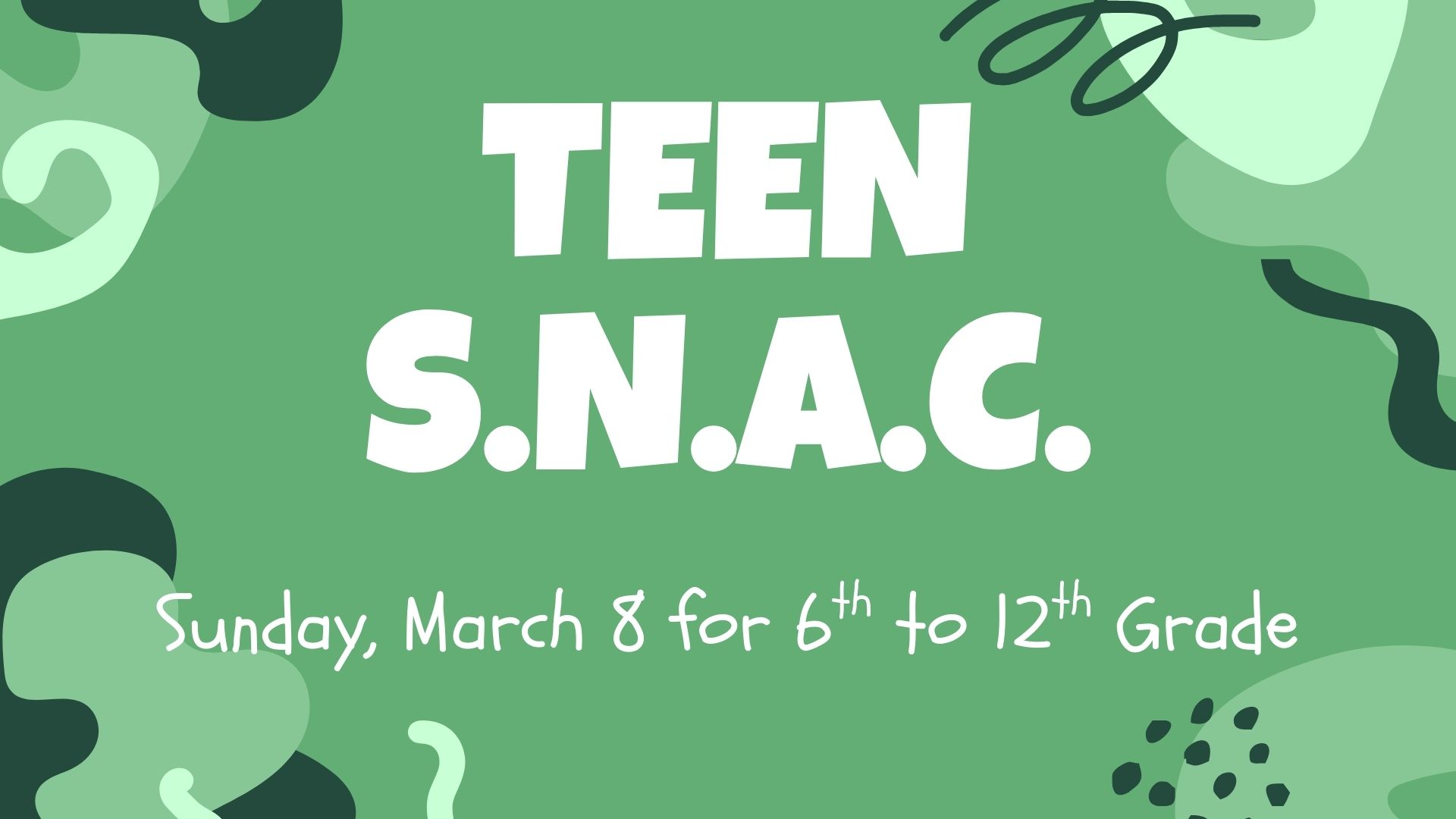 Any young people in grades 6th-12th are welcome to join us for Teen S.N.AC.!